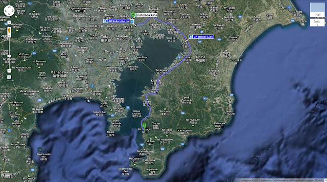 Il faut 3h pour y aller. La course se déroulant le samedi matin, départ 9h30, nous sommes parti la veille. En fait, nous aurions pu partir le matin même, mais quand nous nous sommes inscrit, il ne restait plus que des places avec hôtel inclus, donc on a pris ça. Voici le trajet en train. Le train a eu un peu de retard à cause d'un tremblement de terre. C'est le quatrième depuis que nous sommes revenus au Japon, mais le premier qui arrive pendant qu'on est dans le train. Le train était en gare. Ça a juste secoué un peu.
